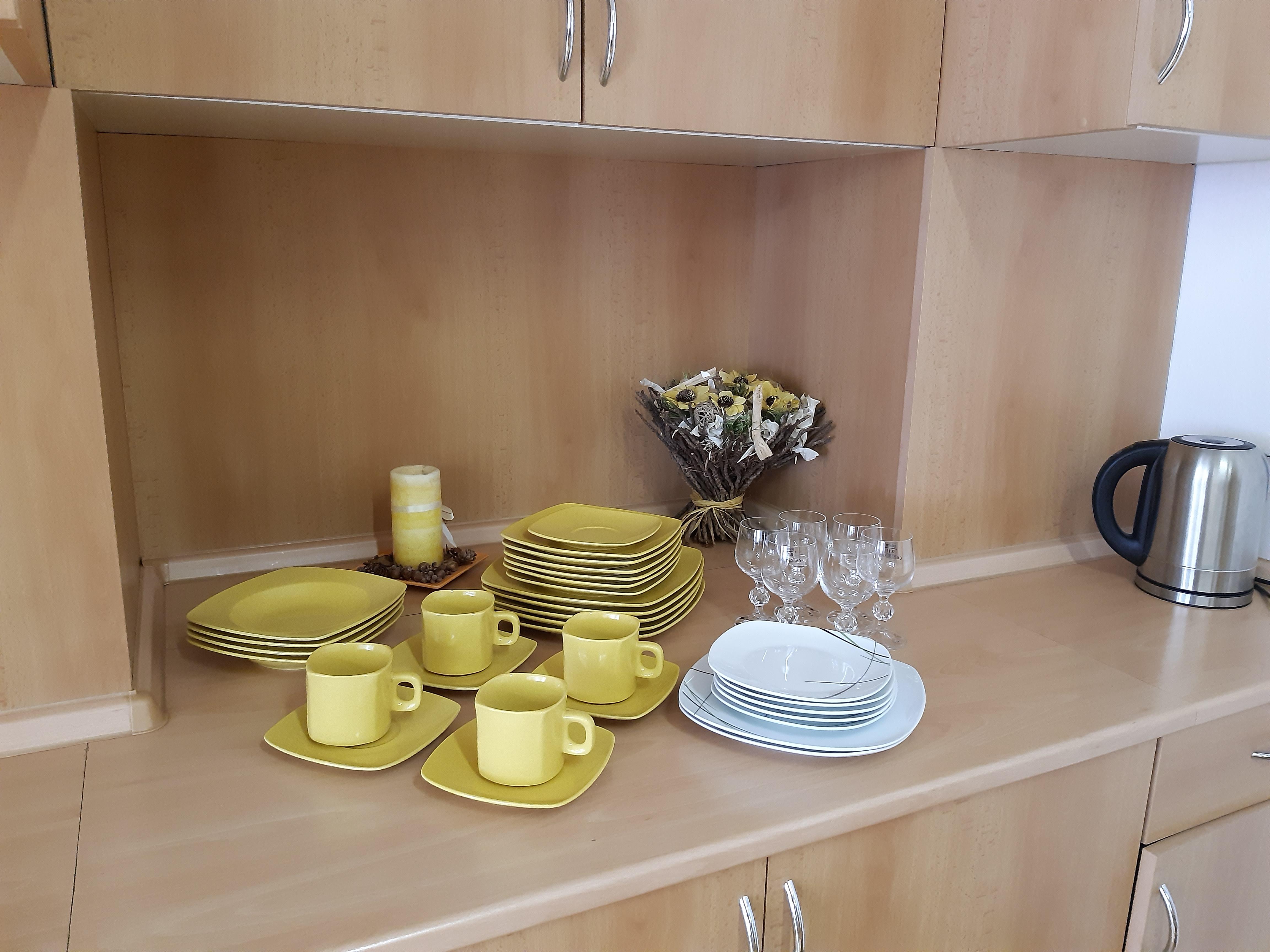 Zajistíme potřebné vybavení kuchyňky (rychlovarnou konvici, talíře, skleničky, hrnečky, apod.).